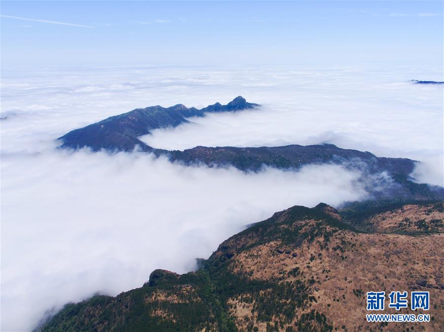 武夷山国家公园最高峰黄岗山云雾缭绕(4月1日摄,无人机照片)。福建省武夷山国家公园独特的自然环境造就了丰富的生物多样性,成为人们认识自然、亲近自然的理想之地。 新华社记者 姜克红 摄