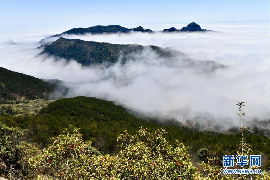 站在武夷山国家公园最高峰黄岗山远望云雾缭绕的群峰(4月1日摄)。 新华社记者 姜克红 摄