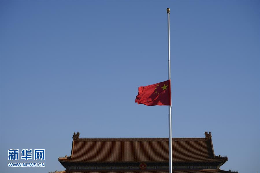 4月4日,北京天安门广场降下半旗,表达对抗击新冠肺炎疫情斗争牺牲烈士和逝世同胞的深切哀悼。新华社记者 彭子洋 摄