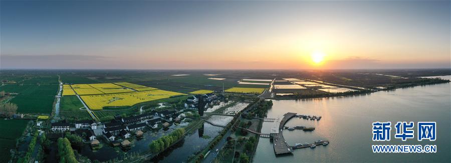 这是4月5日拍摄的白马湖风光(无人机全景照片)。 新华社记者 杨磊 摄