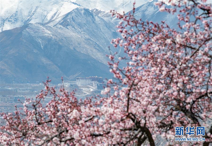 帕邦喀周围的桃花盛开,从桃花丛中可以看到远处的布达拉宫(4月7日摄)。进入四月,拉萨春意盎然,花开似锦,一派春色令人向往。位于拉萨北部山坳里的古刹帕邦喀,周围桃花盛开,格外幽静。新华社记者普布扎西摄