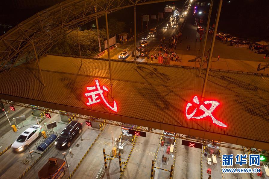 4月8日凌晨,车辆准备通过武汉西高速收费站。 新华社记者 沈伯韩 摄