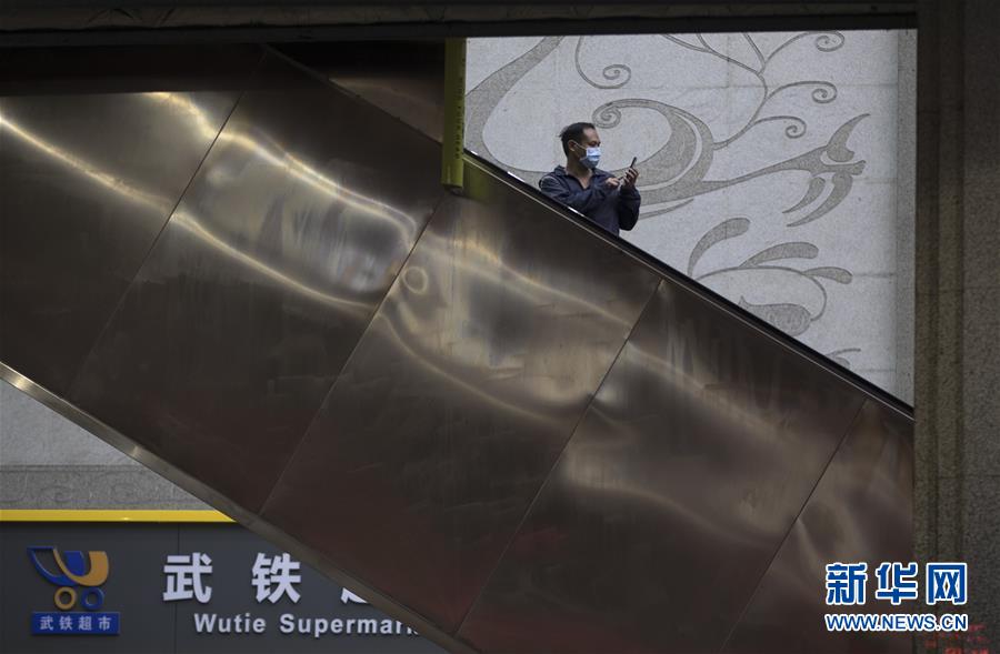 4月7日晚,一名旅客在武昌火车站拍摄站内情景。新华社记者 费茂华 摄
