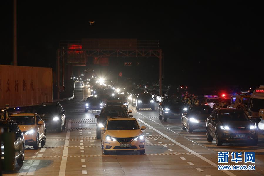 4月8日凌晨,车辆准备通过武汉西高速收费站。 新华社记者 沈伯韩 摄