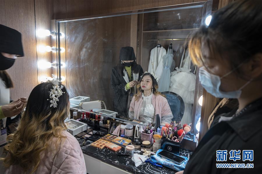 4月12日,程熠爽在化妆。新华社记者费茂华摄