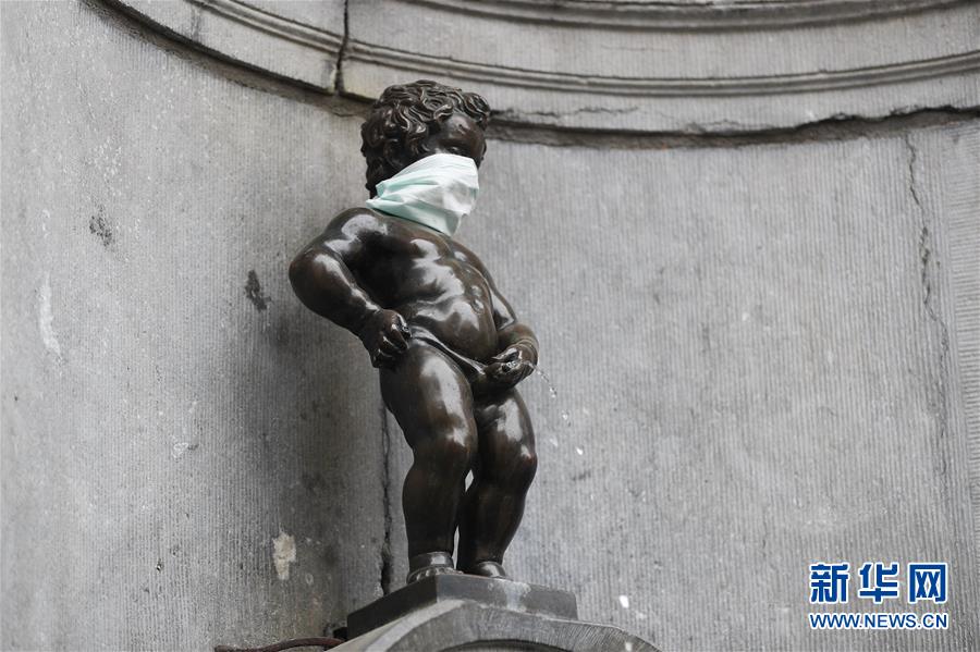这是4月13日在比利时布鲁塞尔拍摄的被戴上口罩的“小尿童”。比利时国家公共卫生研究所13日发布公报说,比利时新冠确诊病例累计已达30589例,死亡3903例。新华社记者郑焕松摄