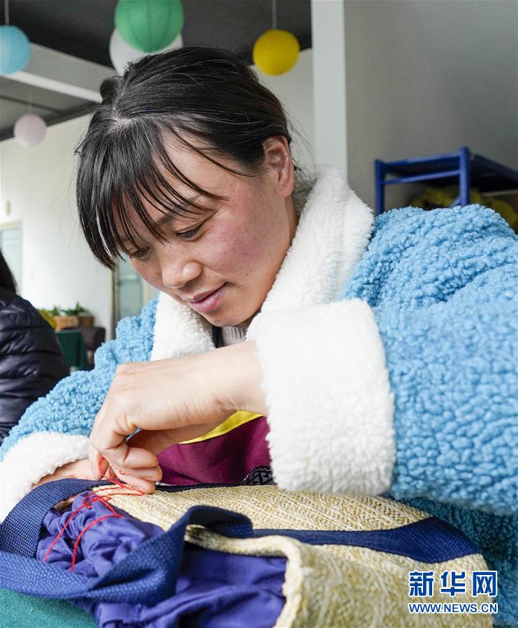 4月8日,在重庆石柱中益乡巾帼扶贫工坊,当地妇女在缝制土家族风情手提袋。近年来,重庆市石柱土家族自治县中益乡在重庆市妇联的帮助下,以当地非遗传统技艺作为结合点,把扶贫与扶志、扶智相结合,通过引进外来文创企业对留守妇女、贫困及残疾人群进行刺绣培训,设立巾帼扶贫工坊等多种形式,帮助当地村民实现就业增收。据介绍,巾帼扶贫工坊运行以来,为当地陆续开发出土家族布老虎、手提袋、餐垫绣边、创意相框等一系列文创产品,帮助参加巾帼扶贫工坊的留守妇女和贫困村民实现月均增收近千元。新华社记者刘潺摄