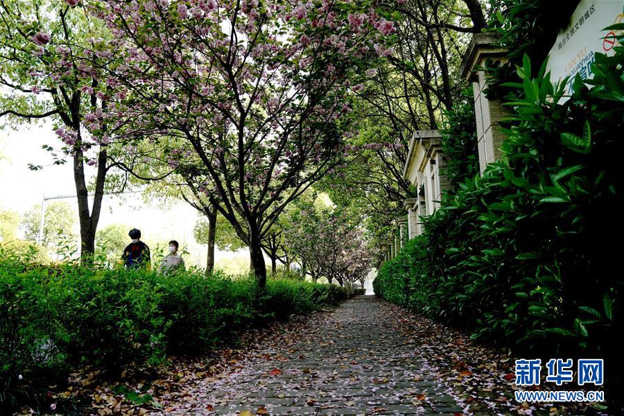 近日,上海首条“落樱不扫”道路在杨浦区江湾城路展开试点,“樱花路”保留5天不扫,以精细化的“捡拾”进行保洁,让市民全方位体验樱花之美。新华社记者张建松摄