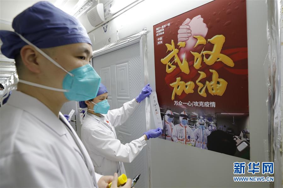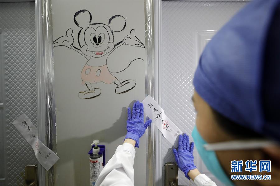 4月15日,武汉中南医院的护士在病区贴封条。当日,武汉雷神山医院正式关闭。新华社记者肖艺九摄