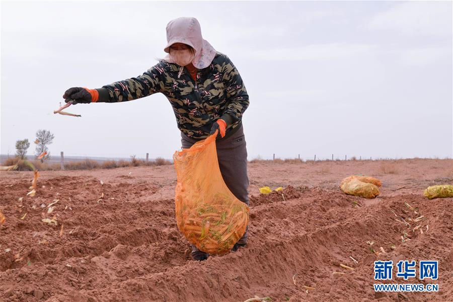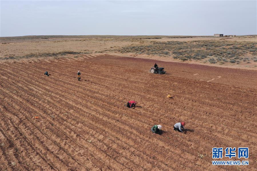 月15日,农民在杭锦旗道劳呼都格嘎查的农田里栽种红葱苗。春种时节,在内蒙古鄂尔多斯市杭锦旗道劳呼都格嘎查,农民忙着播种红葱。在鄂尔多斯高原种植的红葱耐旱耐寒,具有较好的经济效益。新华社记者徐钦摄