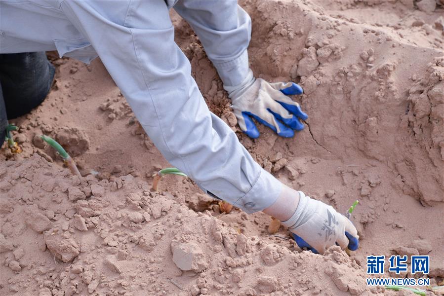 月15日,农民在杭锦旗道劳呼都格嘎查的农田里栽种红葱苗。春种时节,在内蒙古鄂尔多斯市杭锦旗道劳呼都格嘎查,农民忙着播种红葱。在鄂尔多斯高原种植的红葱耐旱耐寒,具有较好的经济效益。新华社记者徐钦摄