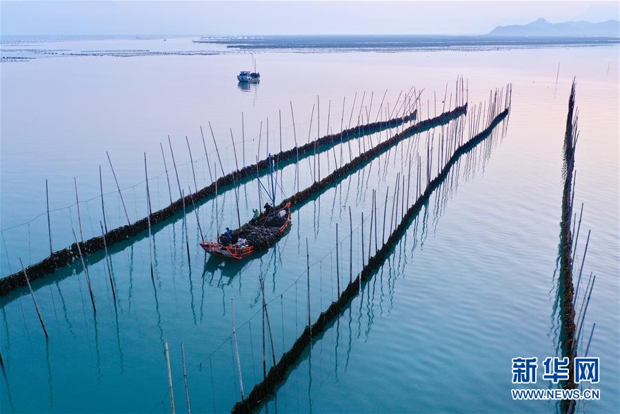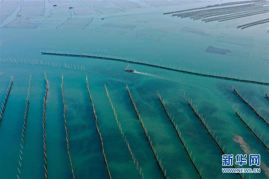 这是4月16日清晨拍摄的福建省霞浦县长春镇海带养殖区(无人机照片)。