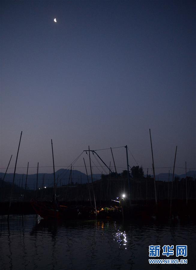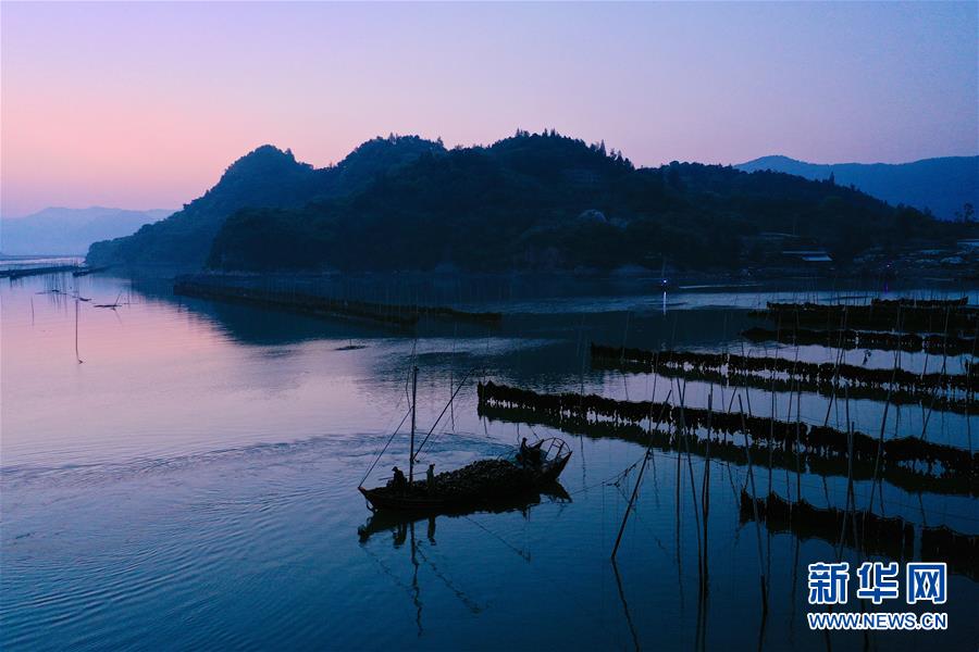 4月16日,福建省霞浦县长春镇渔民在清晨时分运输海带(无人机照片)。