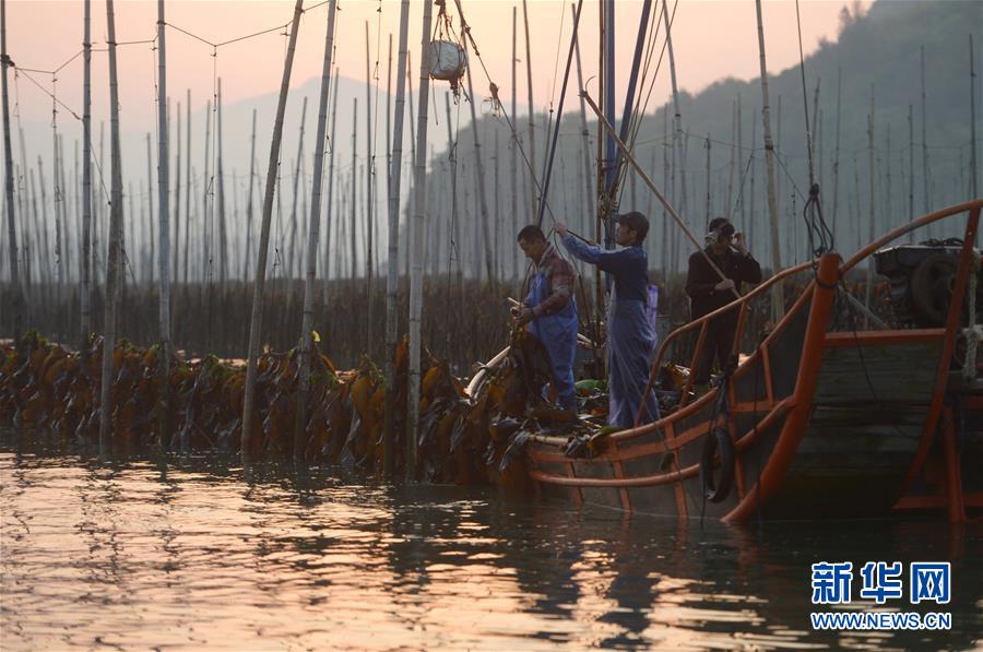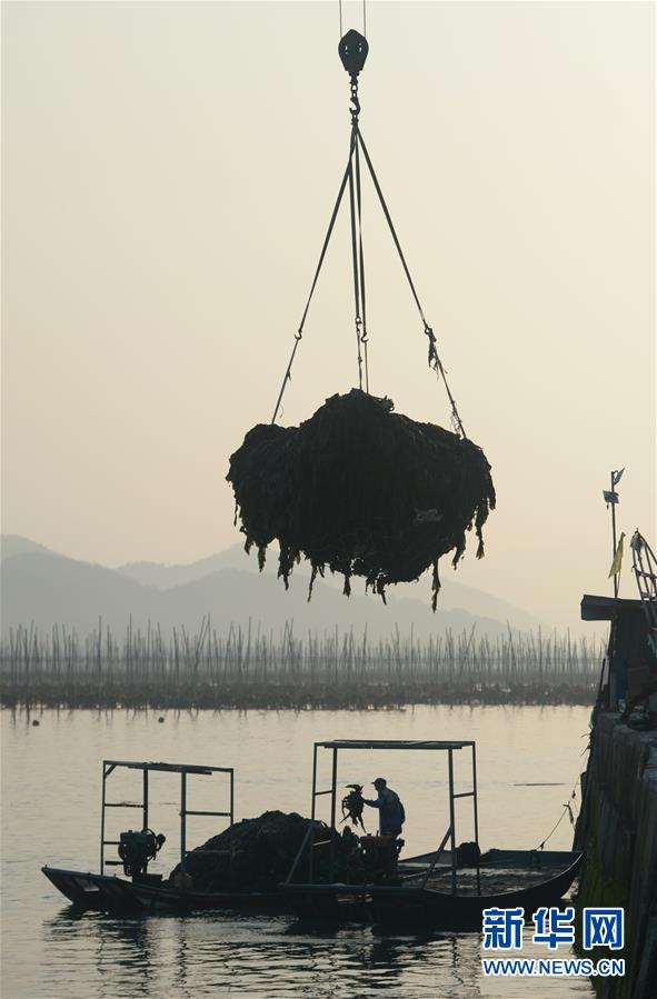 近日,福建省霞浦县长春镇迎来海带收获季。长春镇目前海带养殖面积2万余亩,海带养殖是当地渔民增收致富的重要产业。新华社记者姜克红摄