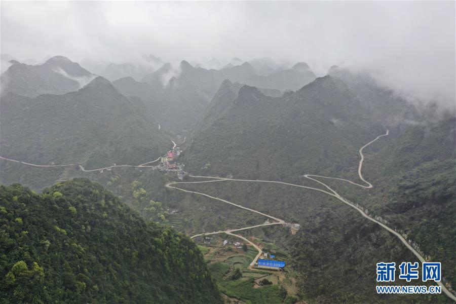 这是广西都安瑶族自治县大兴镇古朝村的屯级公路(3月17日摄,无人机照片)。