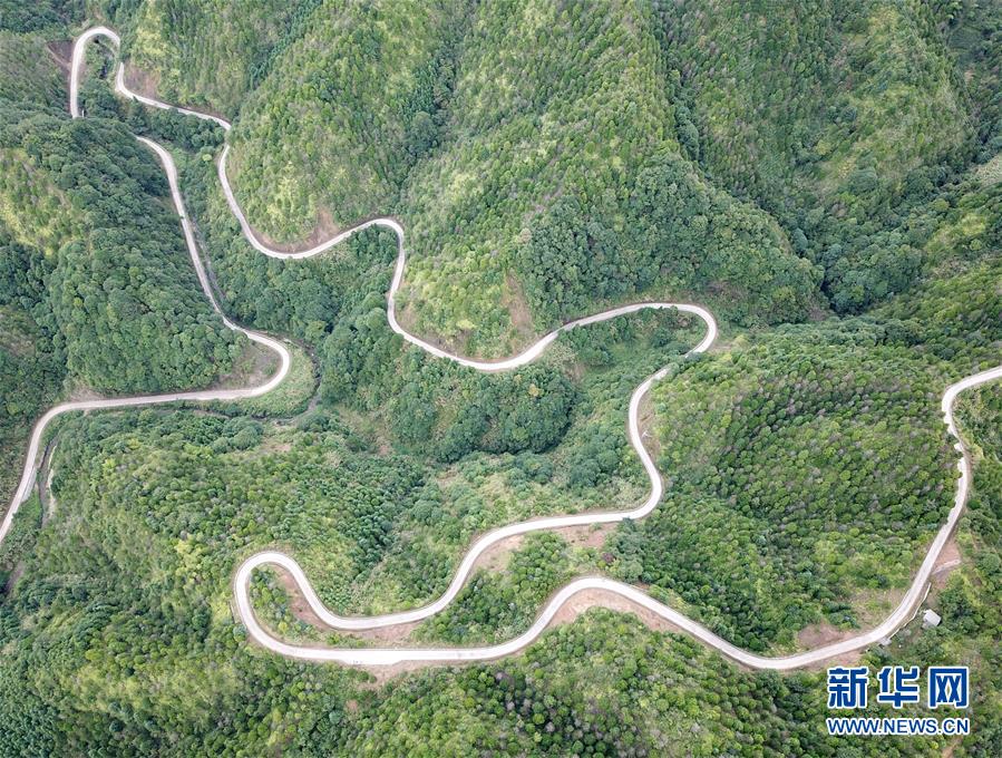 这是广西金秀瑶族自治县金秀镇境内的乡村道路(2018年8月2日摄,无人机照片)。新华社记者陆波岸摄
