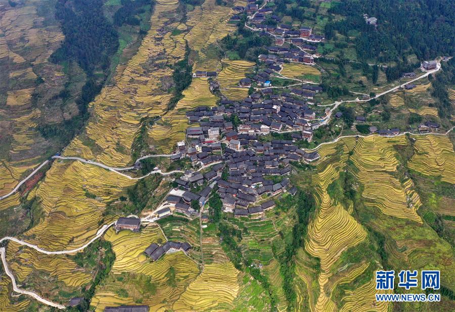 这是广西龙胜各族自治县龙脊镇境内的公路(2019年10月11日摄,无人机照片)。新华社记者陆波岸摄