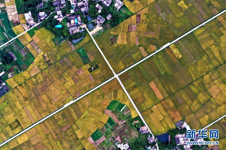 这是广西钦州市钦南区康熙岭镇的一处田间路(2019年11月1日摄,无人机照片)。新华社记者张爱林摄