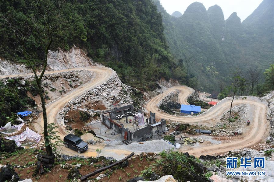 这是广西都安瑶族自治县大兴镇古朝村一条铺完砂石等待硬化的屯级公路(3月17日摄)。新华社记者王念摄
