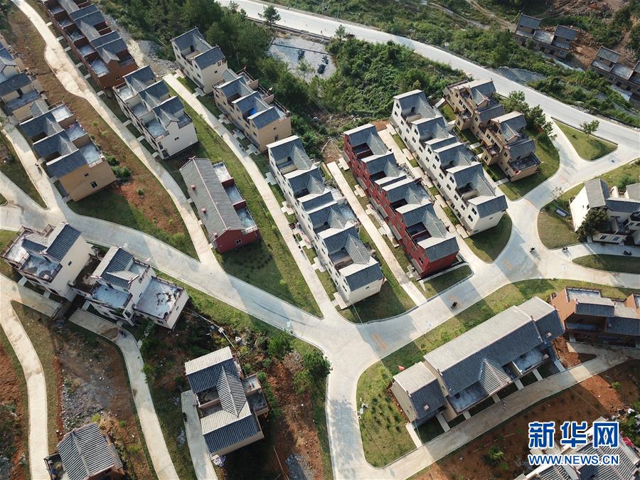 这是广西南丹县里湖瑶族乡易地扶贫搬迁集中安置小区内四通八达的道路(2018年10月11日摄,无人机照片)。新华社记者周华摄