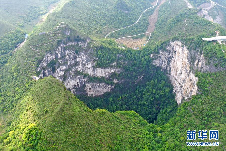 这是4月19日拍摄的中国乐业—凤山世界地质公园内的大石围天坑(无人机照片)。中国乐业—凤山世界地质公园位于广西西北部,公园内地质遗迹包括天坑群、天窗群、钟乳石等,具有重要的科研价值和美学观赏价值。
