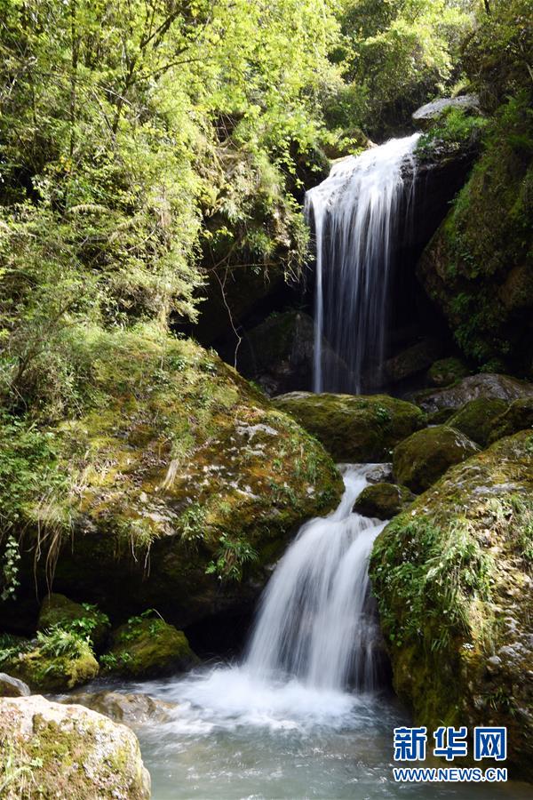 地洞河天坑底部的一处瀑布。新华社张博文摄