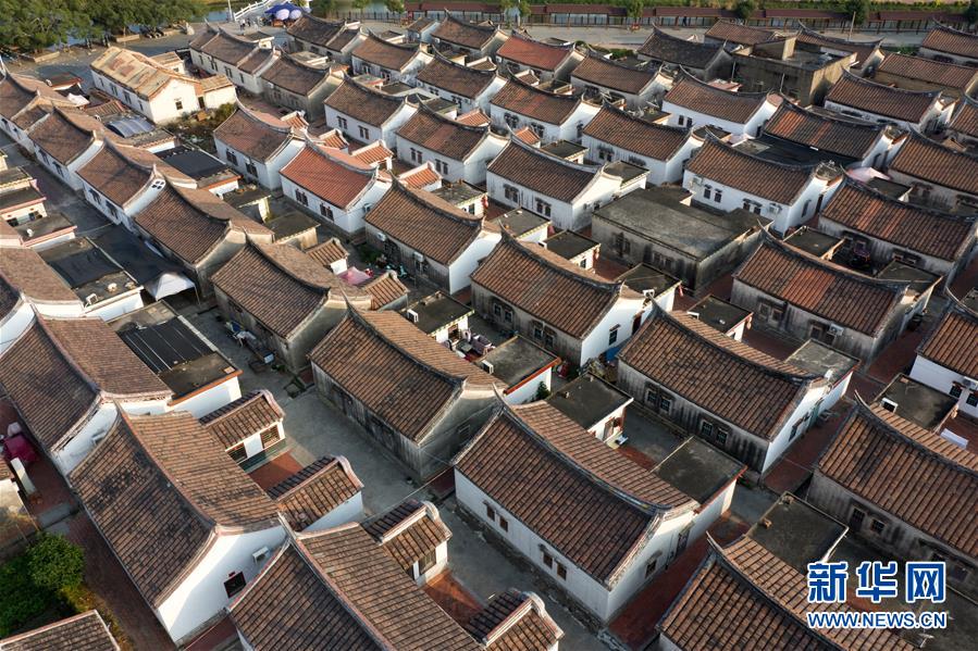 11月14日空中俯瞰闽南水上古村落——埭美村(无人机拍摄)。新华社记者姜克红摄