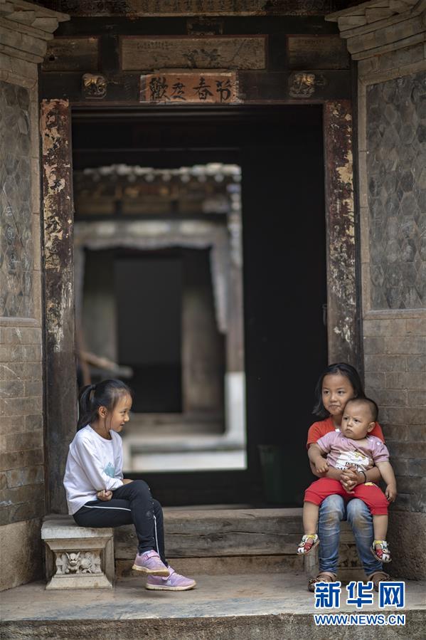石屏县异龙镇符家营村的小朋友们在村里的老屋玩耍(8月8日摄)。新华社记者江文耀摄
