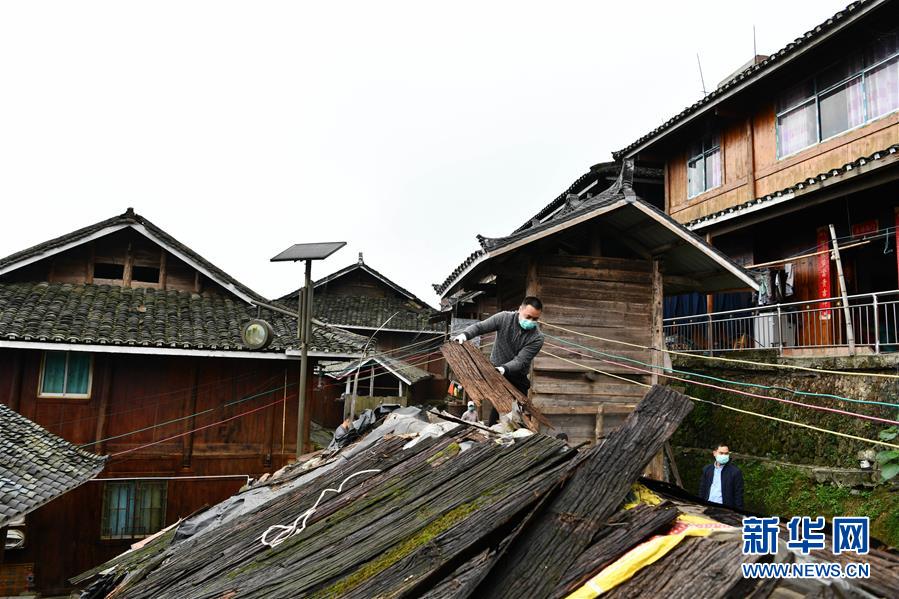 4月19日,贵州省从江县加榜乡加车村脱贫攻坚指挥所的驻村干部帮助农户拆除废弃圈舍。贵州省从江县把人居环境整治作为脱贫攻坚工作的一项重要举措来抓,对乡村规划范围内长期无人居住的危房、废弃禾仓、棚圈、柴草房和房前屋后的残垣断壁等进行清理整治,进行复垦复绿,同时开展农户卫生和村寨环境整治,做到乡村环境干净、卫生、整洁,扮靓美丽乡村。新华社记者杨文斌摄