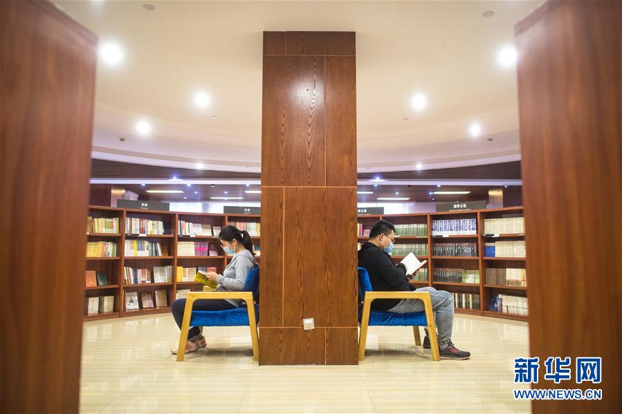 4月18日,读者在卓尔书店读书。当日,武汉卓尔书店获批复工营业。市民们走进书店选购各类书籍,共品书香。疫情期间,卓尔书店在方舱医院、康复驿站等地捐赠设立6个图书角,并在网上举办了9场分享会,邀请各路名家在线分享阅读见解、旅行见闻、人生感悟等,为读者提供丰富的精神食粮。新华社记者肖艺九摄