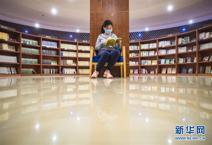 4月18日,读者在卓尔书店读书。当日,武汉卓尔书店获批复工营业。市民们走进书店选购各类书籍,共品书香。疫情期间,卓尔书店在方舱医院、康复驿站等地捐赠设立6个图书角,并在网上举办了9场分享会,邀请各路名家在线分享阅读见解、旅行见闻、人生感悟等,为读者提供丰富的精神食粮。新华社记者肖艺九摄