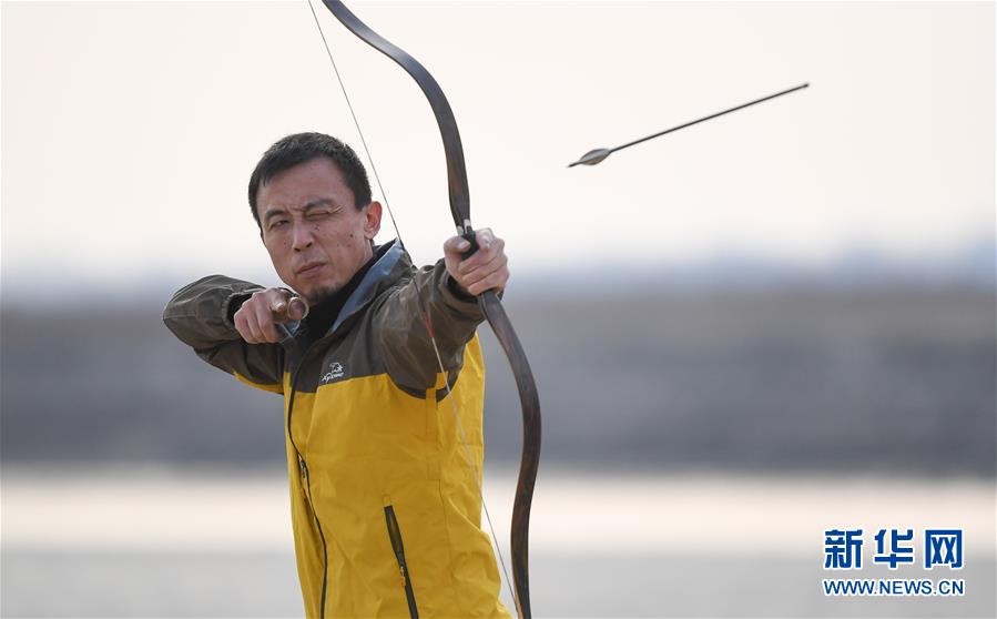 鄂建烨在户外射箭(3月22日摄)。竹子、木料、牛角……位于沈阳市于洪区的一间平房里堆满各种制作传统弓箭的原料。这间房子的主人,今年45岁的鄂建烨是沈阳市非物质文化遗产代表性项目——锡伯族弓箭传统制作技艺的传承人。鄂建烨出身于制弓世家,15岁开始跟随爷爷学习制作锡伯族传统弓箭。制作一张好的锡伯族筋角弓起码需要一年以上时间,虽然工序繁多复杂,但鄂建烨依旧严格按照古法制作锡伯族传统筋角弓,因其制作的弓箭质量上乘而广受传统弓箭爱好者的好评。在制弓之余,鄂建烨还开办传统弓箭俱乐部并积极参加各种射箭比赛,力图将这项技艺传承下去。新华社记者龙雷摄