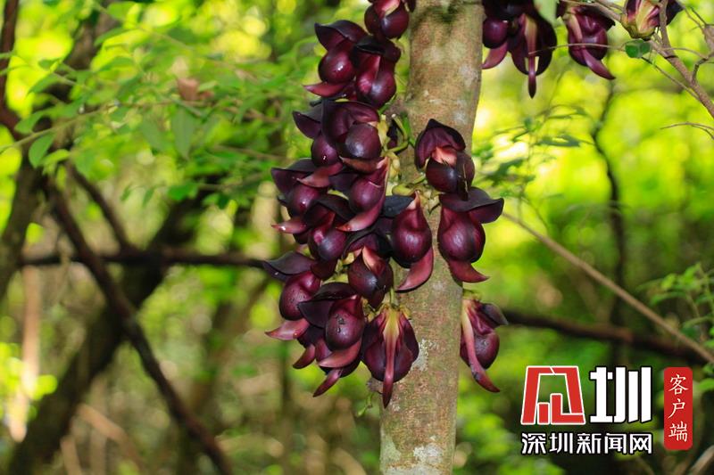 禾雀花生长在翀山内,位于江西省婺源县赋春镇,千亩野生禾雀花盛大绽放,连片的青翠山林,映着五颜六色的花。这种花造型像禾雀,所以得名“禾雀花”,仔细看花朵,还能辨别出“嘴巴”和“肚子”。禾雀花紫粉色的花朵长在藤蔓上,形态像禾雀,吊挂成串,有一定的药用价值。