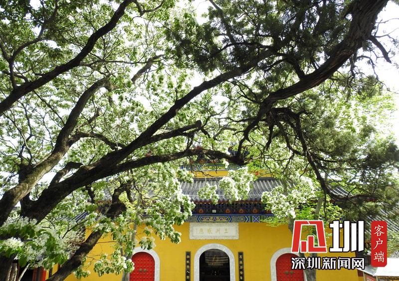 2020年4月22日,连云港市孔望山景区龙洞庵,800余岁流苏古树繁花似锦。
