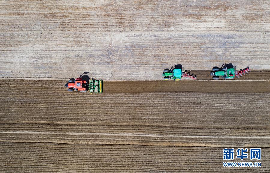 4月22日,西藏拉萨市曲水县茶巴朗村农民利用现代化农业设备播种“藏青2000”(无人机照片)。当日,西藏拉萨市曲水县茶巴朗村进行“藏青2000”春播活动。西藏是全球唯一大规模集中种植青稞的地区,也是青稞驯化和多样化品种的栽培中心。新华社记者普布扎西摄