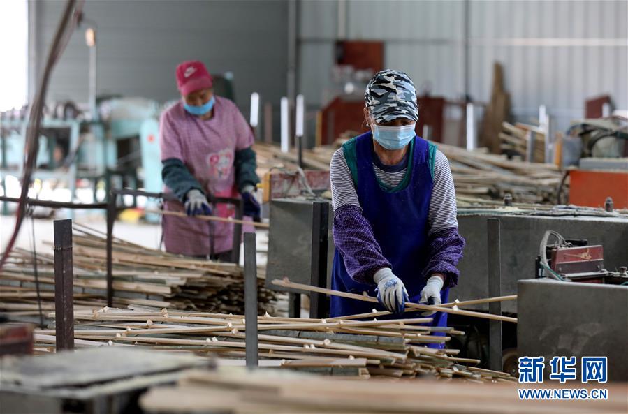 4月24日,在广西融安县农产品加工暨粤桂扶贫协作产业园的一家竹制品外贸企业,工人在加工竹片。日前,广西柳州市融安县农产品加工暨粤桂扶贫协作产业园内的企业已全部复工复产,园区竹制品外贸企业正在加紧生产,在完成外贸订单的同时主动对接国外市场,研发新的竹制品,提高产品附加值。新华社记者黄耀滕摄