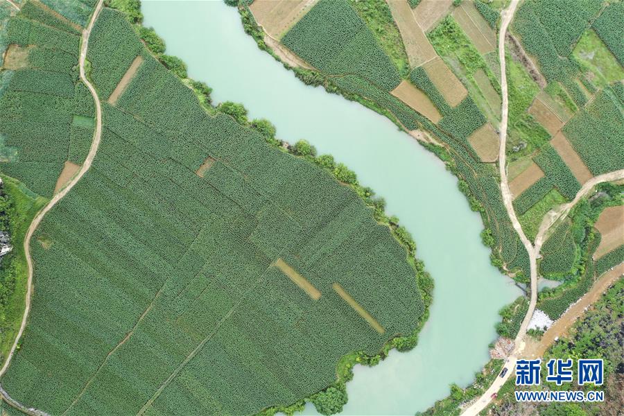 广西隆安县南圩镇田园景色(4月23日摄,无人机照片)。新华社记者曹祎铭摄