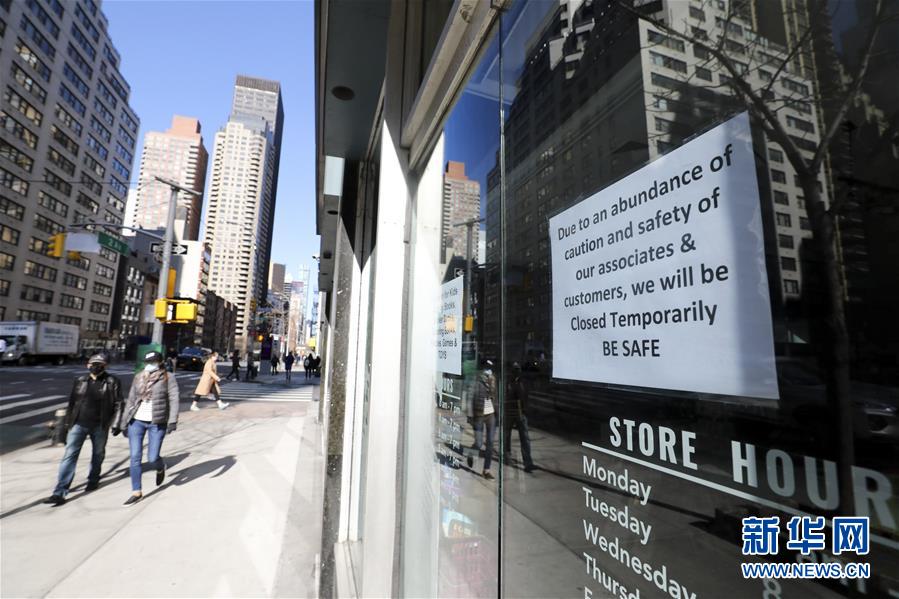 3月21日,在美国纽约第二大道,一家店铺贴出闭店告示。新华社记者王迎摄