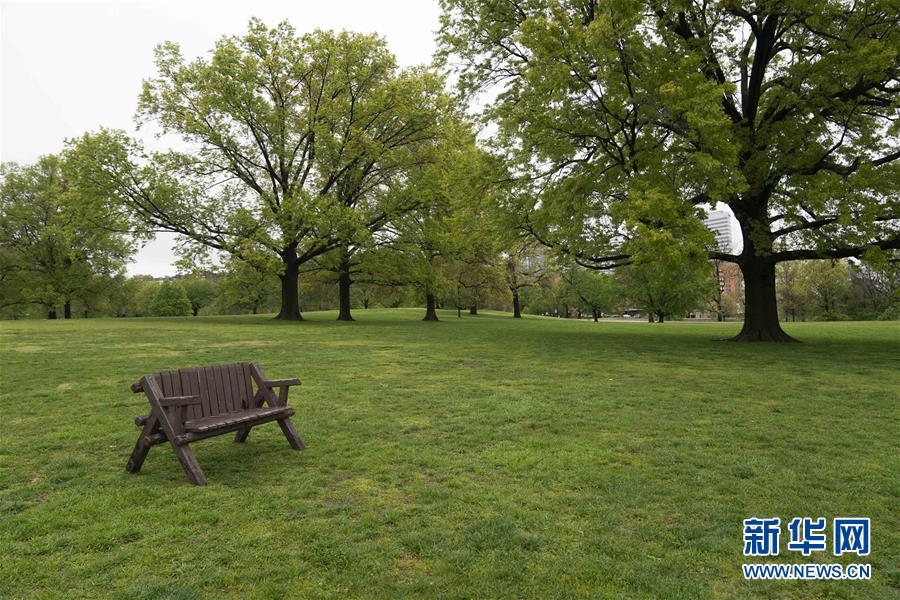 这是4月24日在美国弗吉尼亚州阿灵顿拍摄的空旷的公园。新华社记者刘杰摄
