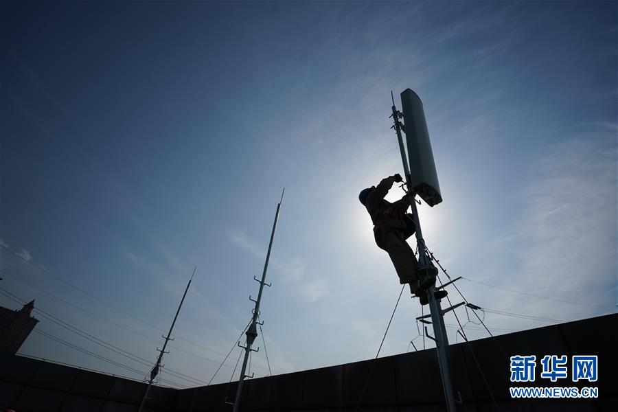4月25日,在南京220千伏城南河变电站屋顶,工人在架设4G设备。当日,三大通信运营商的2座5G、3座4G基站建设工作在南京220千伏城南河变电站屋顶有序展开。在变电站内建设基站可有效利用电网资源,缩短建设周期,节约建设成本。新华社记者季春鹏摄
