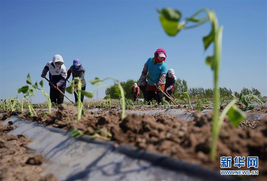 4月25日,滦南县东黄坨镇新户村农民给栽植好的烟薯秧苗培土。近年来,河北省滦南县利用当地土壤和气候特点,引导农民因地制宜发展烟薯种植,取得良好效果。目前该县烟薯种植面积达3万多亩,每亩年收入达5000多元。新华社记者杨世尧摄