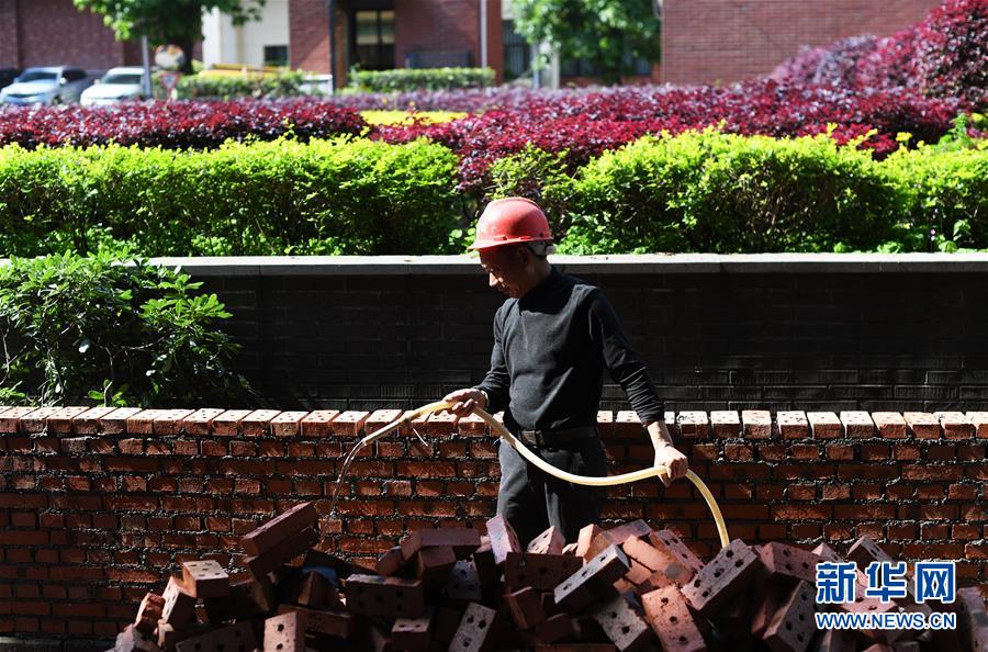 4月26日,工人在渝中区大溪沟街道双钢路社区改造提升项目施工现场作业。近段时间以来,重庆市渝中区大溪沟街道加快推进辖区内老旧小区改造提升工作,从环境卫生、房屋管理及养护、安防及车辆管理、绿化管理等方面进行综合改造提升,以增强社区居民的幸福感、获得感、安全感。新华社记者王全超摄