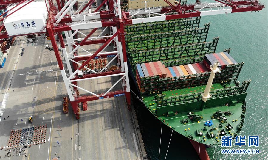 世界最大集装箱船首航青岛港 甲板面积相当于3.5个足球场