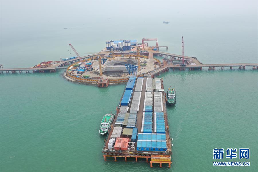 这是4月25日拍摄的伶仃洋大桥施工区与海上生活区(无人机照片)。新华社记者卢烨摄