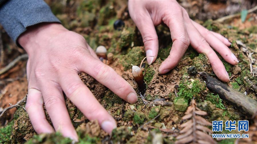 广西三江侗族自治县八江镇归内村村民在山间林下培育灵芝(4月25日摄)。目前,广西柳州市三江侗族自治县群众抓住时令,抢种早稻,培育灵芝和果蔬等经济作物,全力发展生产,决战脱贫攻坚。三江侗族自治县地处滇黔桂石漠化片区,是国家扶贫开发工作重点县。新华社记者张爱林摄