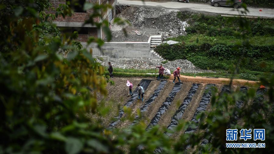 广西三江侗族自治县八江镇归内村村民利用山间旮旯地种植豆角(4月25日摄)。目前,广西柳州市三江侗族自治县群众抓住时令,抢种早稻,培育灵芝和果蔬等经济作物,全力发展生产,决战脱贫攻坚。三江侗族自治县地处滇黔桂石漠化片区,是国家扶贫开发工作重点县。新华社记者张爱林摄