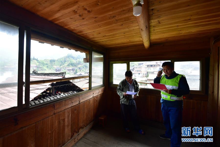 李义成(右)在走访贫困户(4月20日摄)。新华社记者黄孝邦摄