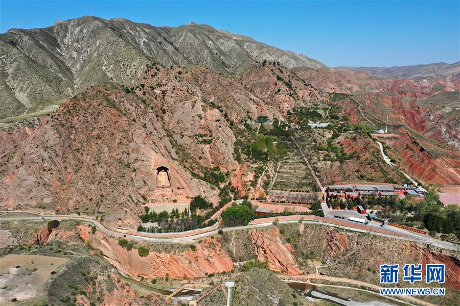 这是4月27日拍摄的宁夏须弥山石窟景观(无人机照片)。新华社记者王鹏摄