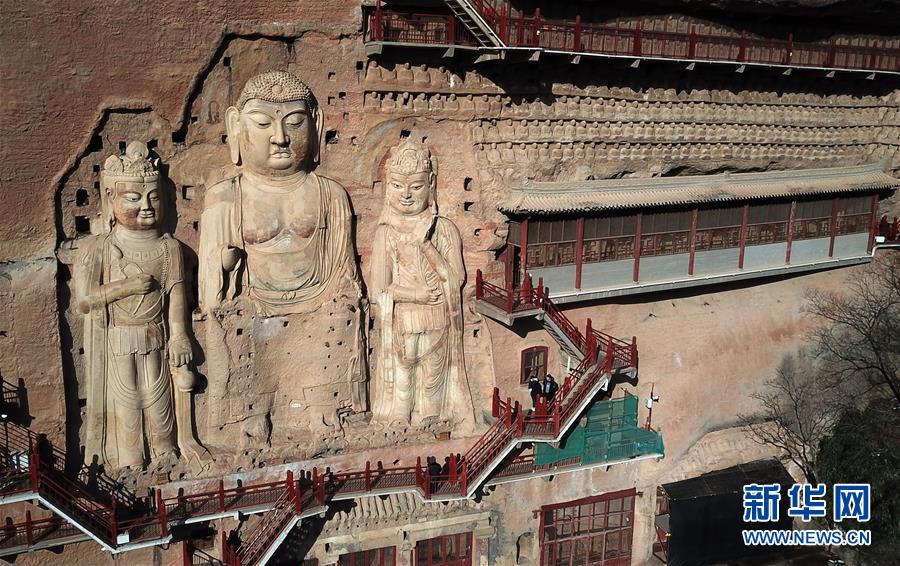 12月26日,游客在麦积山石窟参观游览。新华社记者马宁摄