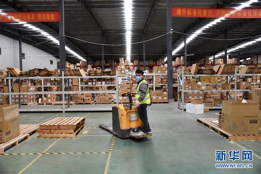 4月22日,山东临沂新明辉商城的工作人员李效峰在分拣货物。新华社记者王凯摄